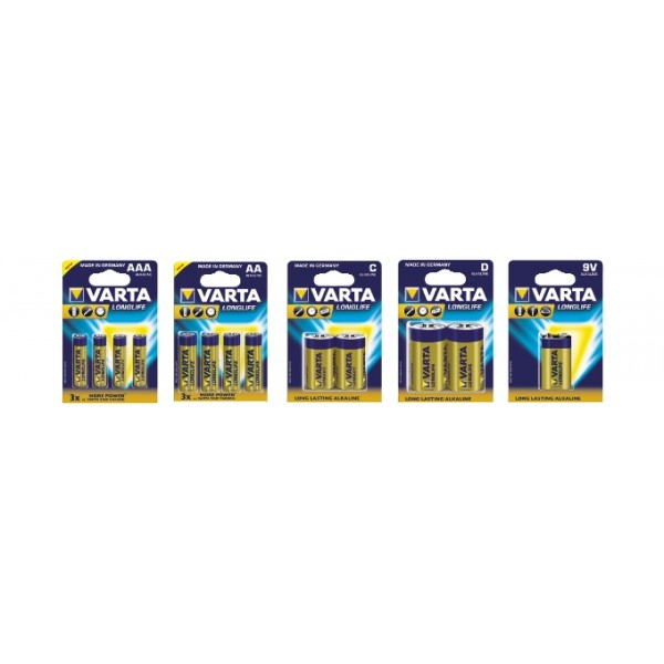 Le Pile Varta Alcaline sono l'ideale per gli apparecchi con richiesta di energia bassa e costante. La sua formulazione è stata pervista per le famiglie con alti consumi e moltepli usi quotidiani. Costruita in Germania, garantisce una affidabilità nel tempo.Ulteriore vantaggio per il consumatoreè la pratica estrazione singola dal blister, senza confonderla con quella già utilizzata.