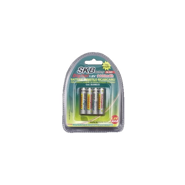 Accumulatore al NiMh formato AAA. Questo tipo di accumulatore è stato progettato per tutte le applicazioni dove è necessario avere un funzionamento garantito da un'ampia affidabilità. Accetta la carica standard (1/10 della capacità in 16 ore) oppure carica rapida (C) con una temperatura di 25°C. Garantisce 1000 cicli di carica scarica.Conforme a tutte le normative internazionali.