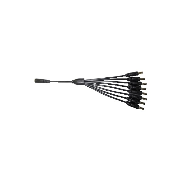 Consente di poter alimentare fino a 8 apparecchiature con un unico alimentatore in corrente continua. Cavo da 30cm con una spina maschio (5,5x2,1mm) e 4 prese femmina (5,5x2,1mm). Indicato per impianti di videosorveglianza o sistemi on-board per telecamere sportive.