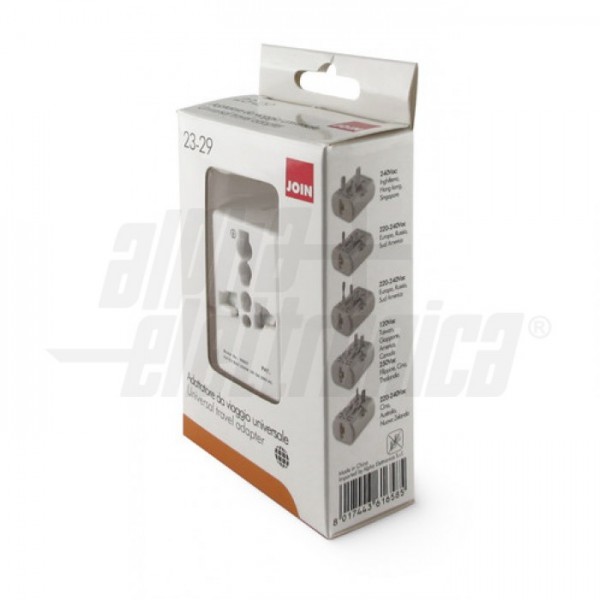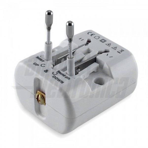 Adattatore universale da viaggio, utilizzabile in più di 150 paesi nel mondo per alimentare tutti i dispositivi elettronici. In particolare utilizzabile in Europa, Regno Unito, Stati Uniti e Australia.