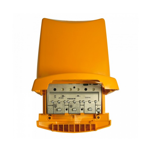 Amplificatore da palo per amplificare i segnali televisivi terrestri di un'antenna.Ha 1 unico ingresso con amplificazione in varie bande. L'amplificatore si alimenta a 24Vdc attraverso del cavo coassiale d'uscita