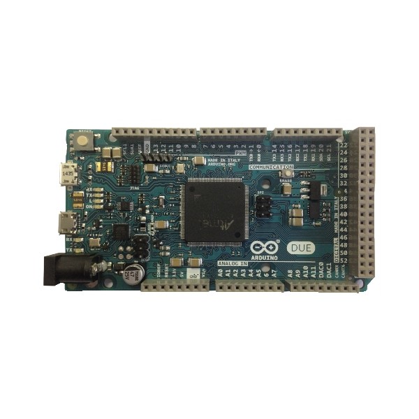 La scheda Arduino Due è dotata di un microcontrollore a 32 bit SAM3X8E ARM Cortex-M3. Per attivare la scheda Due e iniziare, è possibile collegarla a un computer tramite un cavo micro USB oppure utilizzare un adattatore c.a.-c.c./batteria.
