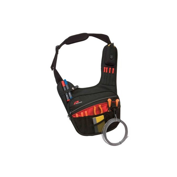 La borsa portautensili diagonale è realizzata in tessuto speciale rinforzato. Ha una cinghia a tracolla regolabile, una tasca per telefono cellulare e pratiche tasche interne ed esterne.