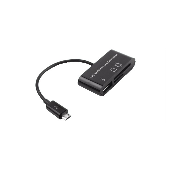 La tecnologia USB OTG (On The Go) consente lo scambio diretto di dati tra periferiche senza la mediazione di un PC. Questo card reader OTG con porta supplementare USB e con connettore Micro USB per Android consente la connessione di Fotocamere e altre periferiche USB, o la lettura diretta di SD(HC), MMC e T-Flash (Micro SD) fino a 16GB di capacità massima. La connessione e la sincronizzazione sono dirette.