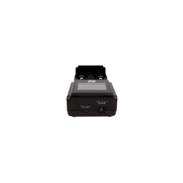 Carica batterie Li-Ion. Ricarica tutti i principali formati di batterie agli Ioni di Litio (26650, 22650, 18650, 18490, 18350, 17670, 17500, 14500, 10440, 16340) di diverse capacità e di batterie Ni-MH (AAA , AA , C , D). Particolarmente raccomandato per ricaricare le batterie Li-Ion in formato 18650, per sigarette elettroniche e torce. Le batterie sono ricaricabili singolarmente. Protetto da inversione di polarità, anomalia delle batterie e corto circuito. Dispone di timer di sicurezza e di funzione di protezione -?V. Schermo LCD "smart" di controllo di tutte le funzionalità. Alimentato tramite USB o alimentatore 12vcc (opzionale). Dimensioni 12,8x3,7x6,7mm. Peso Kg 0,105.