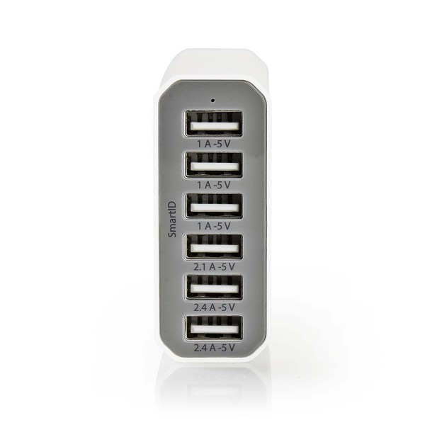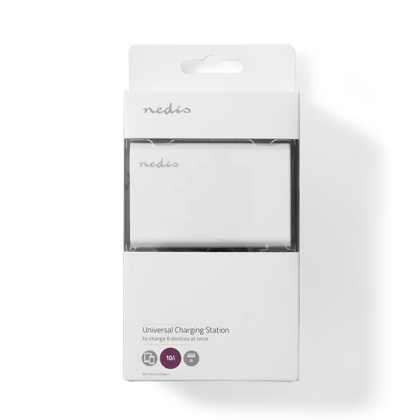 Possibilità di ricaricare fino a 6 dispositivi USB contemporaneamente, con un notevole risparmio di tempo. Smartphone, tablet, power bank, fotocamere digitali, sistemi di navigazione: tutti dispositivi compatibili con questo caricabatterie da parete USB multiporta Nedis®. Questo caricabatterie estremamente conveniente include la tecnologia SmartID. Rileva automaticamente la corrente richiesta del dispositivo collegato.