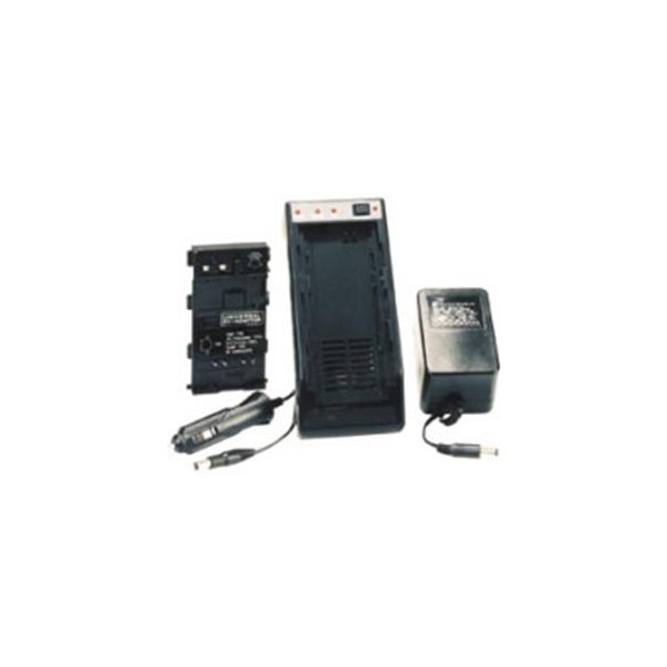 Adatto per scaricare/caricare quasi tutte le batterie per telecamere VHS-C E 8 mm. Può essere alimentato a 220 Vca o 12 Vcc (cavo con spinotto accendisigari in dotazione).