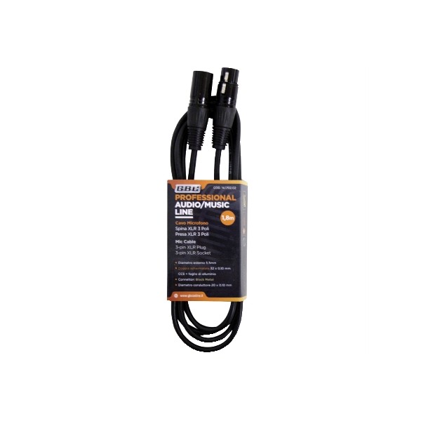 Cavo prolunga professionale da spina XLR 3 poli a presa XLR 3 poli.