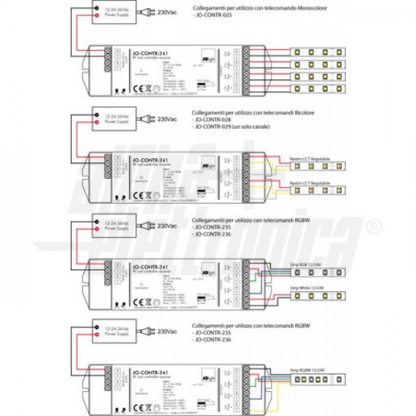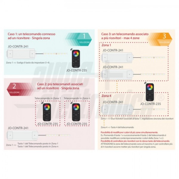 Questo controller ricevitore JO-CONTR-241 necessita di almeno un telecomando compatibile per essere comandato (vedi articoli correlati).