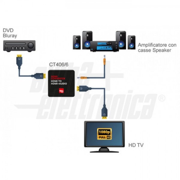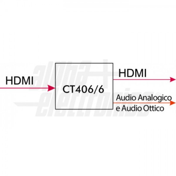 Il convertitore CT406/6 permette l'estrazione del segnale audio dall'ingresso HDMI consentendo il collegamento dell'audio al proprio amplificatore o Home Theater 5.1.