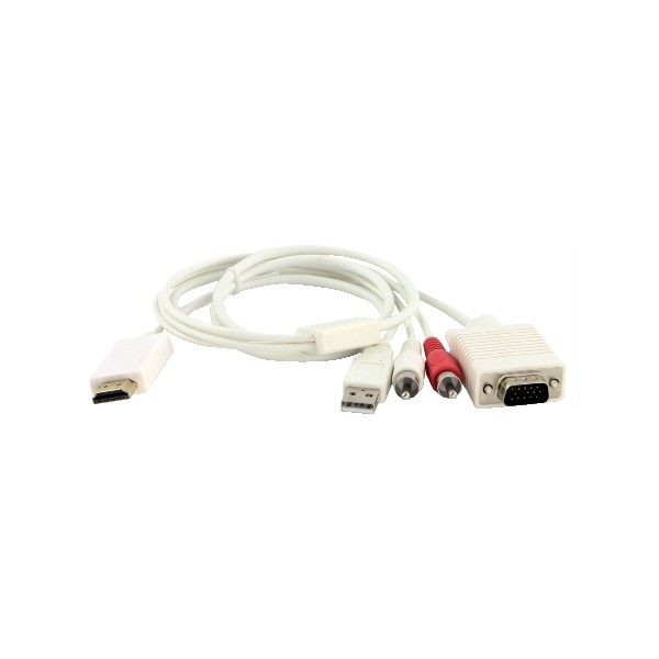 Converti il segnale HDMI in VGA con questo adattatore alimentato tramite USB (N.B.: alimentatore NON incluso; connettere il dispositivo prima ad una fonte di alimentazione USB e solo dopo alla sorgente HDMI e al display VGA di destinazione). Supporta ingresso fino a 1080p e uscita UXGA fino a 1080p (verificare la definizione e la frequenza massime supportate dal display VGA). Consente la connessione di sorgenti digitali come consolle di gioco ai tradizionali display VGA. Uscita Audio Stereo RCA R/L. Lunghezza 1m.