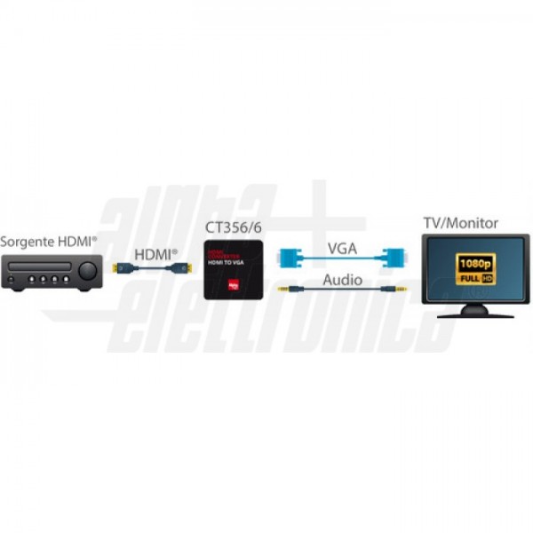 Specifiche- Consente di collegare l'impianto audio al convertitore, il CT356/6 infatti permette la separazione dell'audio dall'ingresso HDMI.