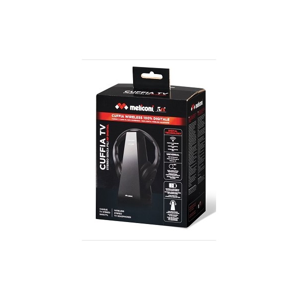 CUFFIE TV STEREO SENZA FILI 100% DIGITALE CON BASE DI RICARICA• Sistema senza fili che consente l’ascolto di programmi senza l’ingombro di cavi e lasciando completa libertà di movimento.