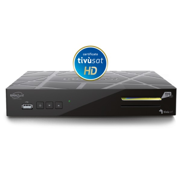 Nuovo decoder satellitare certificato tivùsat. La tv satellitare gratuita tivùsat è full HD, dettagli più nitidi e colori brillanti per immagini spettacolari e fluide semplicemente collegando il cavo HDMI alle TV di Ultima generazione. Grazie all'uscita HDMI puoi godere di un audio spettacolare in alta definizione. Puoi usare il nuovo decoder digitale satellitare DiGiQuest 6996 PVR come videoregistratore digitale e mediaplayer. La Guida Elettronica ai programmi di tivusat offre l’elenco completo e dettagliato della programmazione RAI, Mediaset, La7 e di un mondo di altri canali gratuiti.L’accesso alla EPG (Electronic Program Guide) è facile ed intuitivo grazie al tasto EPG o Guida del telecomando del decoder. Due nuove utili ed innovative funzioni: Stasera in tv e il portale Radio. Grazie alla funzione MHP integrato puoi accedere ai servizi interattivi grazie al collegamento tramite porta Ethernet alla rete internet di casa. Il decoder tivùsat HD è dotato di ben due lettori carta compatibili con la piattaforma tivùsat (carta inclusa nella confezione) e con codifica Conax e basta semplicemente collegarlo ad una tradizionale parabola satellitare.