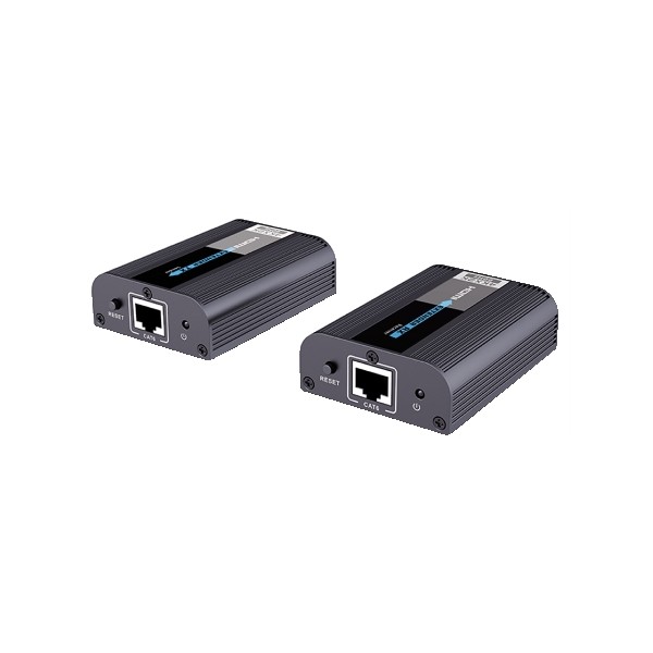 Composto da un trasmettitore e un ricevitore, consente di amplificare il segnale HDMI, notoriamente molto sensibile alla dispersione dovuta alla lunghezza eccessiva dei cavi (che non dovrebbe mai superare i 15m) e di trasferirlo fino ad una distanza massima di 30m usando un cavo Cat. 6 e con risoluzione 4Kx2K 60Hz Ultra HD TV (fino a 60m con risoluzione 4Kx2K 30Hz). Utilizza 1 singolo cavo di rete. Ideale per tutte le situazioni in cui la qualità del segnale può essere influenzata da interferenze di qualunque tipo, e per centri di controllo sicurezza, sale proiezioni, sale conferenze, fiere, uffici in genere, etc. Risolve il problema del passaggio dei cavi HDMI nelle canaline già esistenti. Può essere installato a cascata con uno splitter, e incorpora un ripetitore di telecomando IR, per gestire in remoto decoder satellitari e lettori Blu Ray.