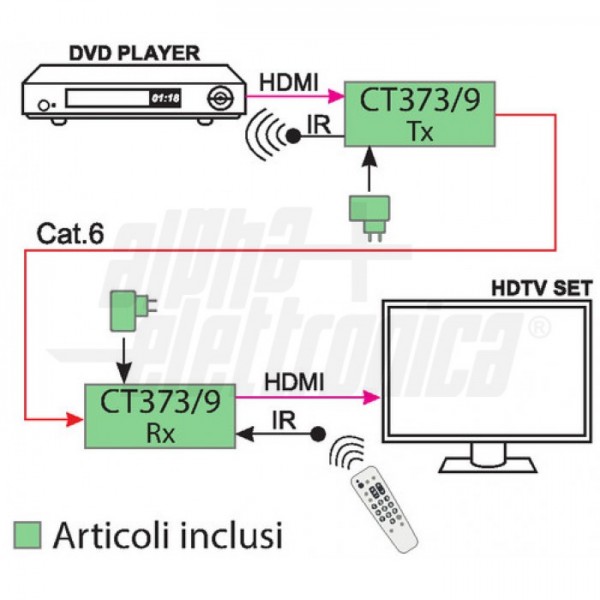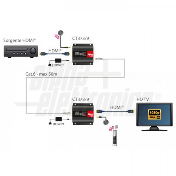 L'extender CT373/9 é adatto per estendere la lunghezza dei cavi HDMI utilizzando un solo cavo Cat.6. In questo modo è possibile la trasmissione a distanze notevoli senza degradazione di segnale. E' la soluzione ideale per uso domestico e show rooms, applicazioni legate alla sicurezza, sale conferenza, scuole e ambienti di training.
