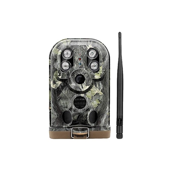 Telecamera dall'aspetto mimetico, adatta per il monitoraggio di animali selvatici e sorveglianza in ambienti domestici. Scatta foto e registra video con audio, a seguito di movimento rilevato sulla scena dai 3 sensori PIR.Invia Email e MMS su evento, con allegato. Sensibilità PIR automatica, con portata di rilevamento max. di 20m (apertura 140°). Micro SD di capacità max 64GB (non in dotazione). Tempo di reazione contenuto: 0,8 sec per Scatto Fotografico. Illuminatore IR con 4 Led da 940nm (invisibili) per visione notturna, e microfono per registrazione audio. Puntatore Laser per ottimizzare l'installazione Uscita micro USB per la visualizzazione e il download delle Immagini registrate da micro SD a PC.
