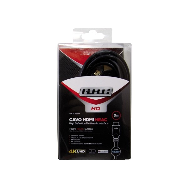 Cavi HDMI HEAC High Speed con Ethernet con canale ARC High End, per TV UHD 4K, Decoder SAT e DVB-T2, game console e lettori Blu-ray; supportano 4Kx2K a 30 o 60fps, con banda passante di 10,2 o 18Gbps; con funzione ECCM per evitare interferenze audio. Connettori Gold in pressofusione e doppio isolamento.