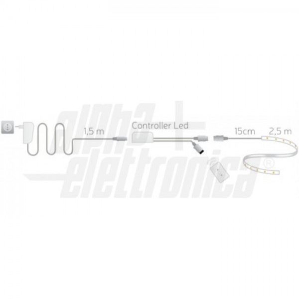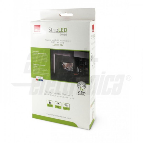 Il kit include un nastro led ad alta intensità multicolore RGB dotato di bi-adesivo, alimentazione 24V, controller con telecomando multifunzione con il quale è possibile modificare i colori e l'intensità della luce emessa dal nastro led.