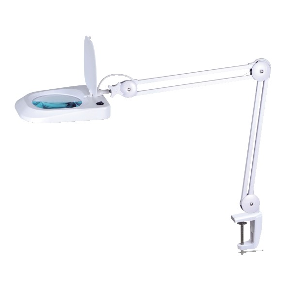 Ideale per elettronica, numismatica, filatelia, estetica. Copertura della lente in plastica. Bracci estensibili fino a 82 cm con regolazione di posizionamento mediante molle di ritensione in acciaio. Morsetto universale regolabile per l’applicazione su qualsiasi tipo di piano.