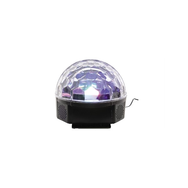 Sfera a LED per effetti speciali luminosi, Di dimensioni molto contenute (solo 19 x 19 x 17cm), è adatta a usi semi professionali (piccoli locali pubblici, comunità, esposizioni permanenti e non) e all'uso privato. Dispone di 6 LED RGB. Funziona in modalità automatica.