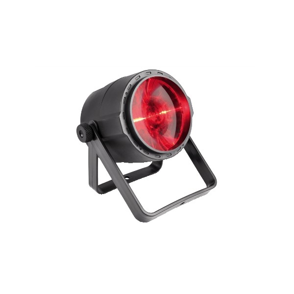 Faretto Spot a LED. 1 LED RGBW da 10W. Funzionamento automatico o tramite DMX (6 canali). Perfetto per installazioni private o professionali fisse o temporanee. Incorpora una batteria ricaricabile tramite USB che garantisce massima flessibilità di installazione. Telecomando IR in dotazione. Staffa per installazione inclusa. Dimensioni 154 x 112 x 191mm. Peso 0,6Kg.