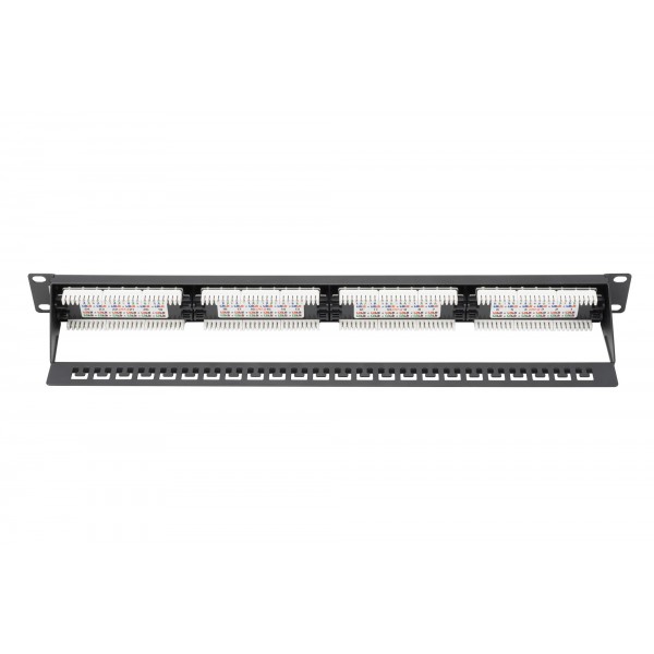 Pannelli patch con connettori RJ45 Cat.6 UTP 8 poli inclusi, ogni connettore ha la codifica del colore, con strisce LSA, secondo le specifiche colori EIA/TIA 568 A & B.