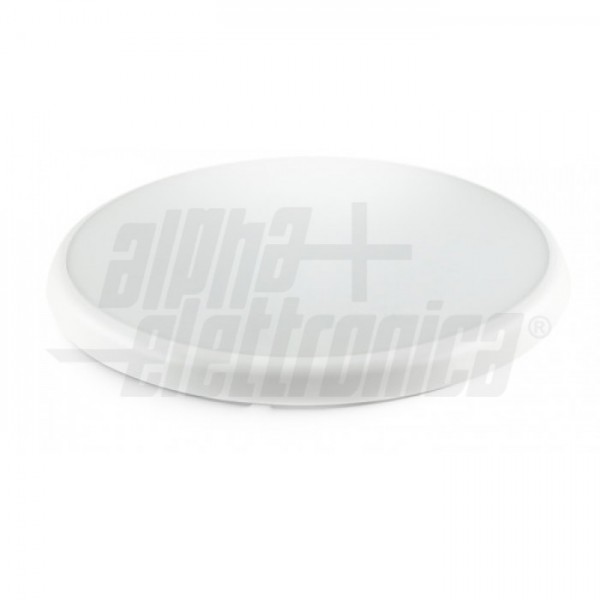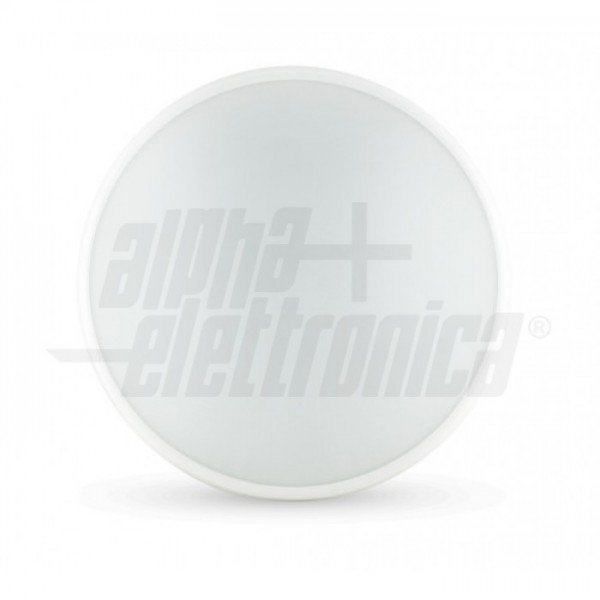 Emissione diffusa. Base bianca in materiale plastico e diffusore in policarbonato opale.