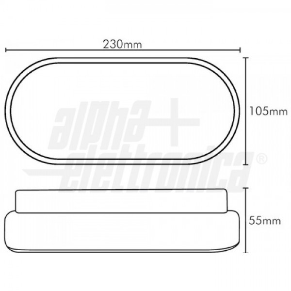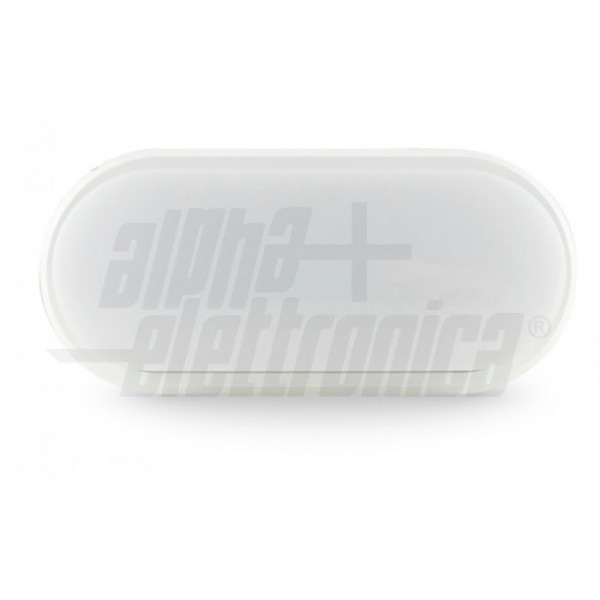 Plafoniera led ovale adatta per montaggio a parete o soffitto in ambienti interni o esterni.