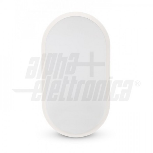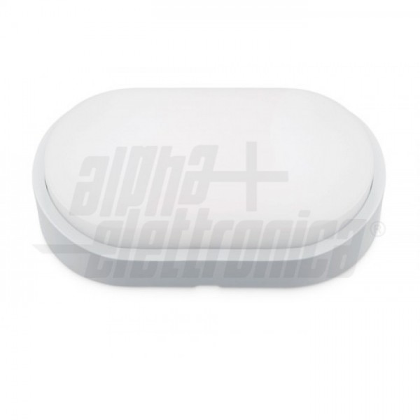 Plafoniera led ovale adatta per montaggio a parete o soffitto in ambienti interni o esterni.