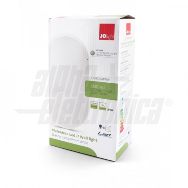 Plafoniera led ovale adatta per montaggio a parete o soffitto in ambienti interni o esterni.