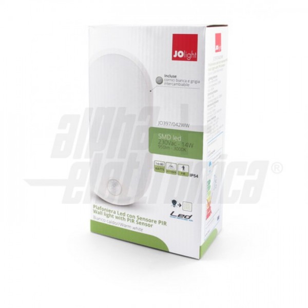 Apparecchio led con sensore di movimento a infrarossi. Installazione a plafone o a parete in applicazioni interne o esterne.