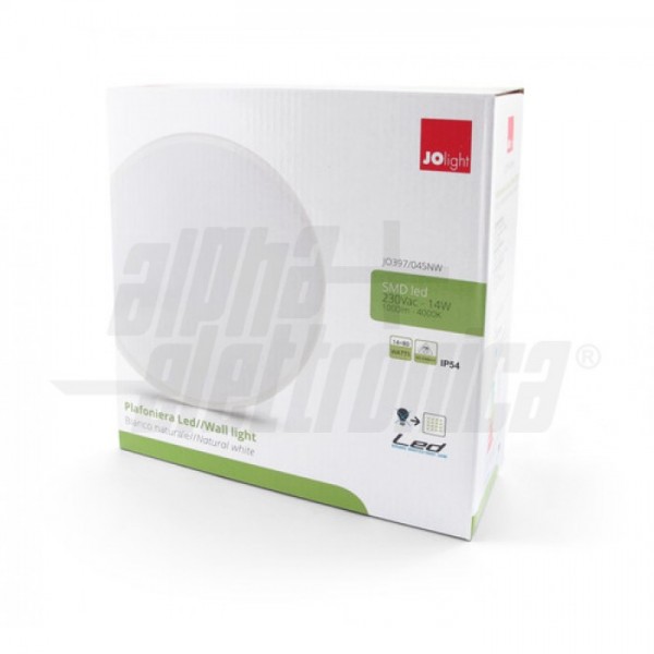 Plafoniera led rotonda adatta per montaggio a parete o soffitto in ambienti interni o esterni.