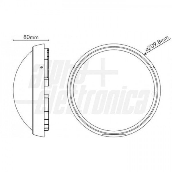 Plafoniera led rotonda in alluminio adatta per montaggio a parete o soffitto in ambienti interni o esterni.