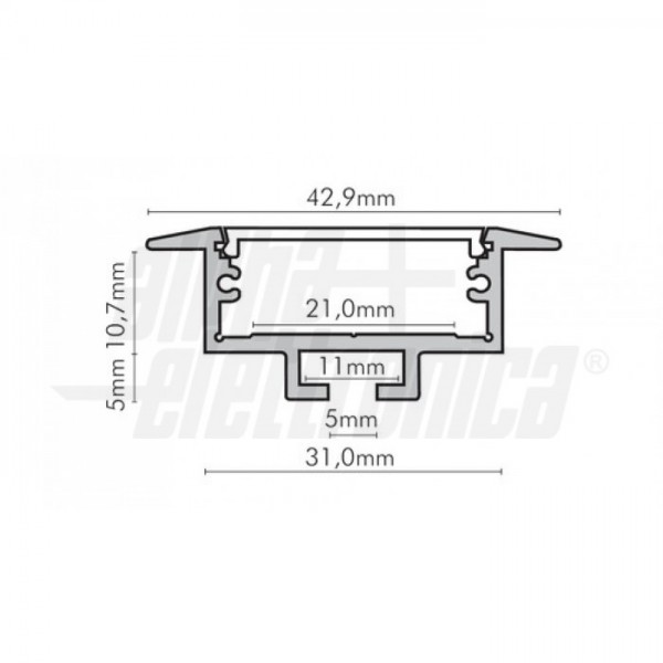 Il profilo illustrato è un componente. Il suo corretto funzionamento con nastri led o moduli led dipende da importanti requisiti di installazione e dimensionamento. La potenza dissipabile è stata calcolata considerando una temperatura ambiente non superiore a 35°C in aria. Condizioni di installazione differenti devono essere opportunamente verificate da personale tecnico. Utilizzare la copertura solo con nastri led IP20.
