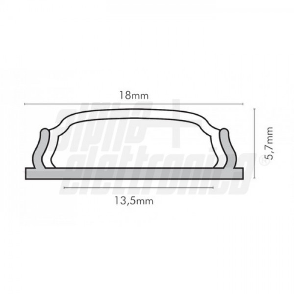 AttenzioneIl profilo illustrato è un componente. Il suo corretto funzionamento con nastri led o moduli led dipende da importanti requisiti di installazione e dimensionamento. La potenza dissipabile è stata calcolata considerando una temperatura ambiente non superiore a 35°C in aria. Condizioni di installazione differenti devono essere opportunamente verificate da personale tecnico. Utilizzare la copertura solo con nastri led IP20.