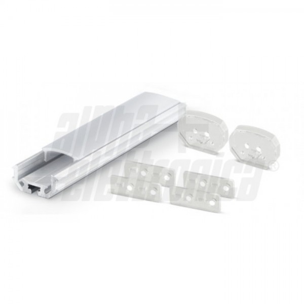 Il profilo illustrato è un componente. Il suo corretto funzionamento con nastri led o moduli led dipende da importanti requisiti di installazione e dimensionamento. La potenza dissipabile è stata calcolata considerando una temperatura ambiente non superiore a 35°C in aria. Condizioni di installazione differenti devono essere opportunamente verificate da personale tecnico. Utilizzare la copertura solo con nastri led IP20.