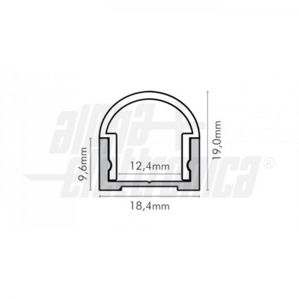 II profilo illustrato è un componente. Il suo corretto funzionamento con nastri led o moduli led dipende da importanti requisiti di installazione e dimensionamento. La potenza dissipabile è stata calcolata considerando una temperatura ambiente non superiore a 35°C in aria. Condizioni di installazione differenti devono essere opportunamente verificate da personale tecnico. Utilizzare la copertura solo con nastri led IP20.