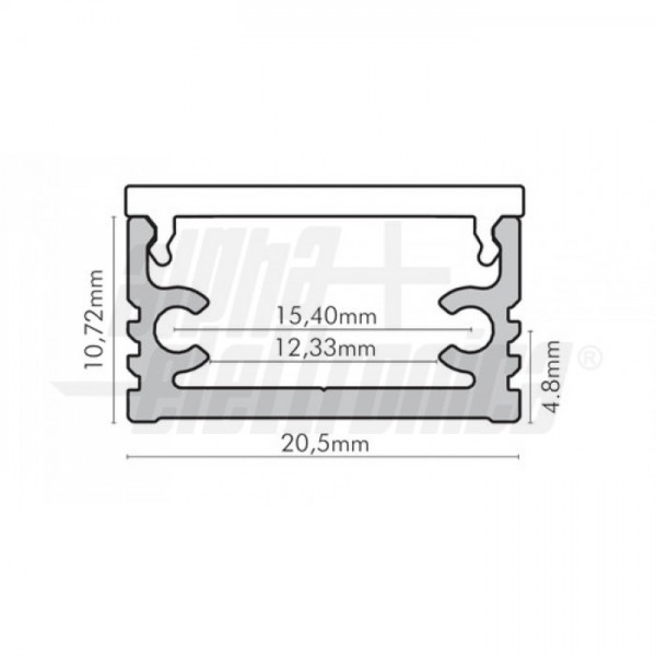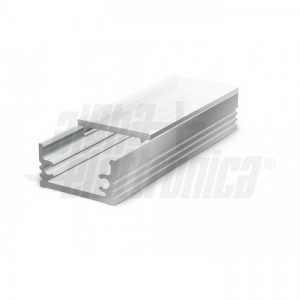 Il profilo illustrato è un componente. Il suo corretto funzionamento con nastri led o moduli led dipende da importanti requisiti di installazione e dimensionamento. La potenza dissipabile è stata calcolata considerando una temperatura ambiente non superiore a 35°C in aria. Condizioni di installazione differenti devono essere opportunamente verificate da personale tecnico. Utilizzare la copertura solo con nastri led IP20.