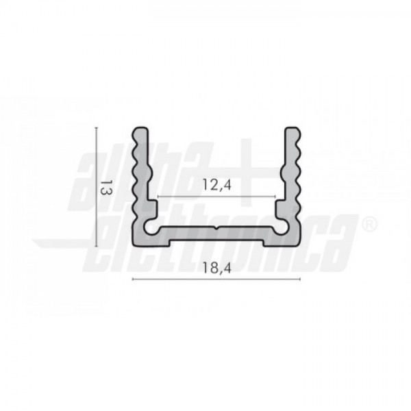 AttenzioneIl profilo illustrato è un componente. Il suo corretto funzionamento con nastri led o moduli led dipende da importanti requisiti di installazione e dimensionamento. La potenza dissipabile è stata calcolata considerando una temperatura ambiente non superiore a 35°C in aria. Condizioni di installazione differenti devono essere opportunamente verificate da personale tecnico. Utilizzare la copertura solo con nastri led IP20.