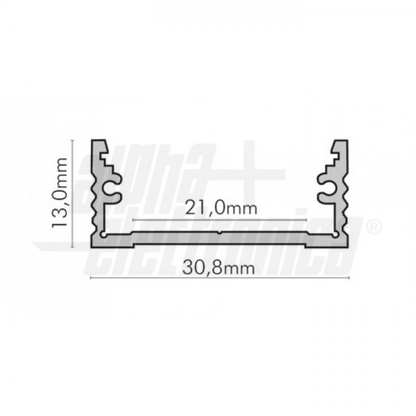 AttenzioneIl profilo illustrato è un componente. Il suo corretto funzionamento con nastri led o moduli led dipende da importanti requisiti di installazione e dimensionamento. La potenza dissipabile è stata calcolata considerando una temperatura ambiente non superiore a 35°C in aria. Condizioni di installazione differenti devono essere opportunamente verificate da personale tecnico. Utilizzare la copertura solo con nastri led IP20.