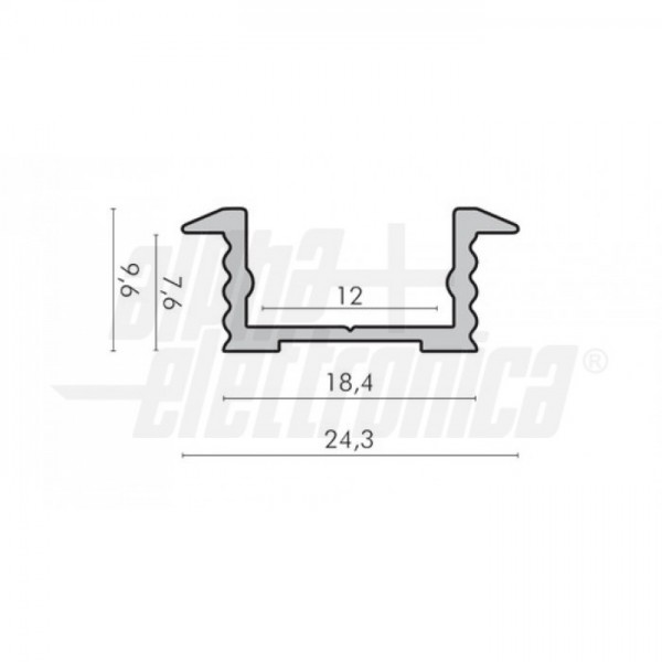 AttenzioneIl profilo illustrato è un componente. Il suo corretto funzionamento con nastri led o moduli led dipende da importanti requisiti di installazione e dimensionamento. La potenza dissipabile è stata calcolata considerando una temperatura ambiente non superiore a 35°C in aria. Condizioni di installazione differenti devono essere opportunamente verificate da personale tecnico. Utilizzare la copertura solo con nastri led IP20.