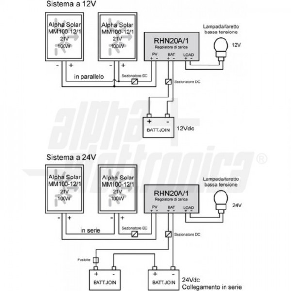 | Potenza massima pannelli (batt. 12V) | 240 W |