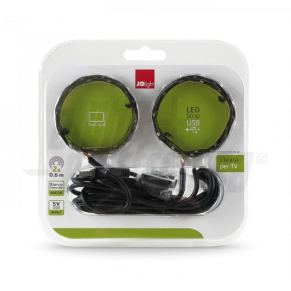 Il kit include due nastri led bianco naturale dotati di bi-adesivo e cavo di alimentazione USB 5V con interruttore.