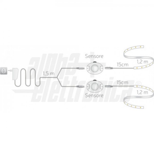 Kit di illuminazione lineare a led per luce soffusa di cortesia adatto per camera da letto, cucina e salotto. La luce si accende automaticamente quando è buio e quando viene rilevato un passaggio in prossimità del sensore.
