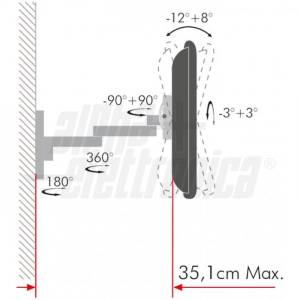 Possibile rimuovere i bracci e scegliere la configurazione di installazione.