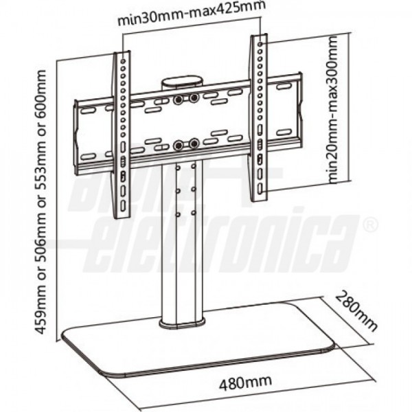 Altezza della TV regolabile in 4 posizioni: 459, 506, 553, 600mm.