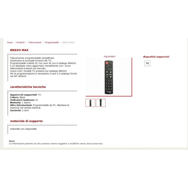 Copre tutti i modelli TV presenti sul catalogo BRAVO