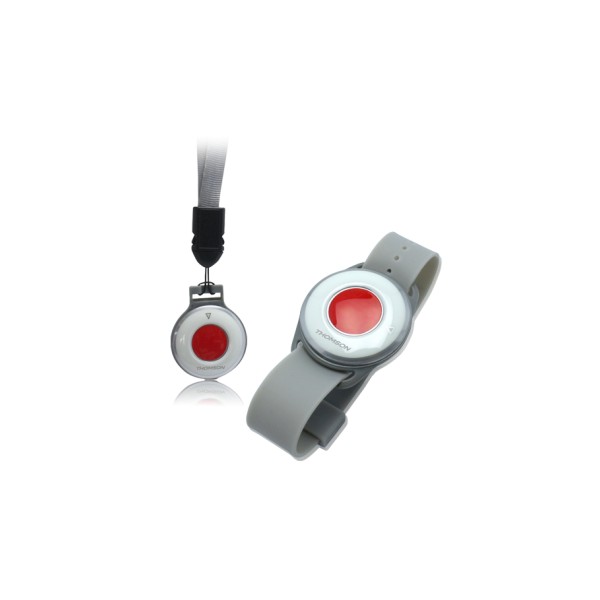 -Semplicemente premendo il pulsante centrale, il braccialetto di emergenza Thomson trasmette le informazioni al centro di allarme Thomson, che attiva un allarme. Particolarmente adatto per gli anziani, con mobilità ridotta o che vivono da soli nella loro casa.
