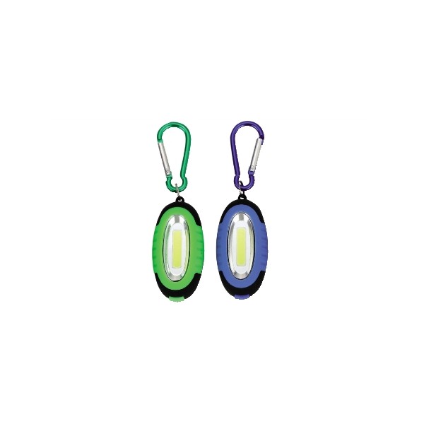 - Luminosità 60 Lumen - Temperatura colore 6000°K - Illuminazione a LED fornita da 1 COB - 3 modalità: luce 100% - 50% - lampeggio - Potenza 1W - Corpo in ABS con finitura gommata - Moschettone in alluminio - Grado di protezione IPX3 - Alimentazione 2 batterie tipo CR2032 (incluse) - Dimensioni 110X35X20mm. (compreso moschettone)